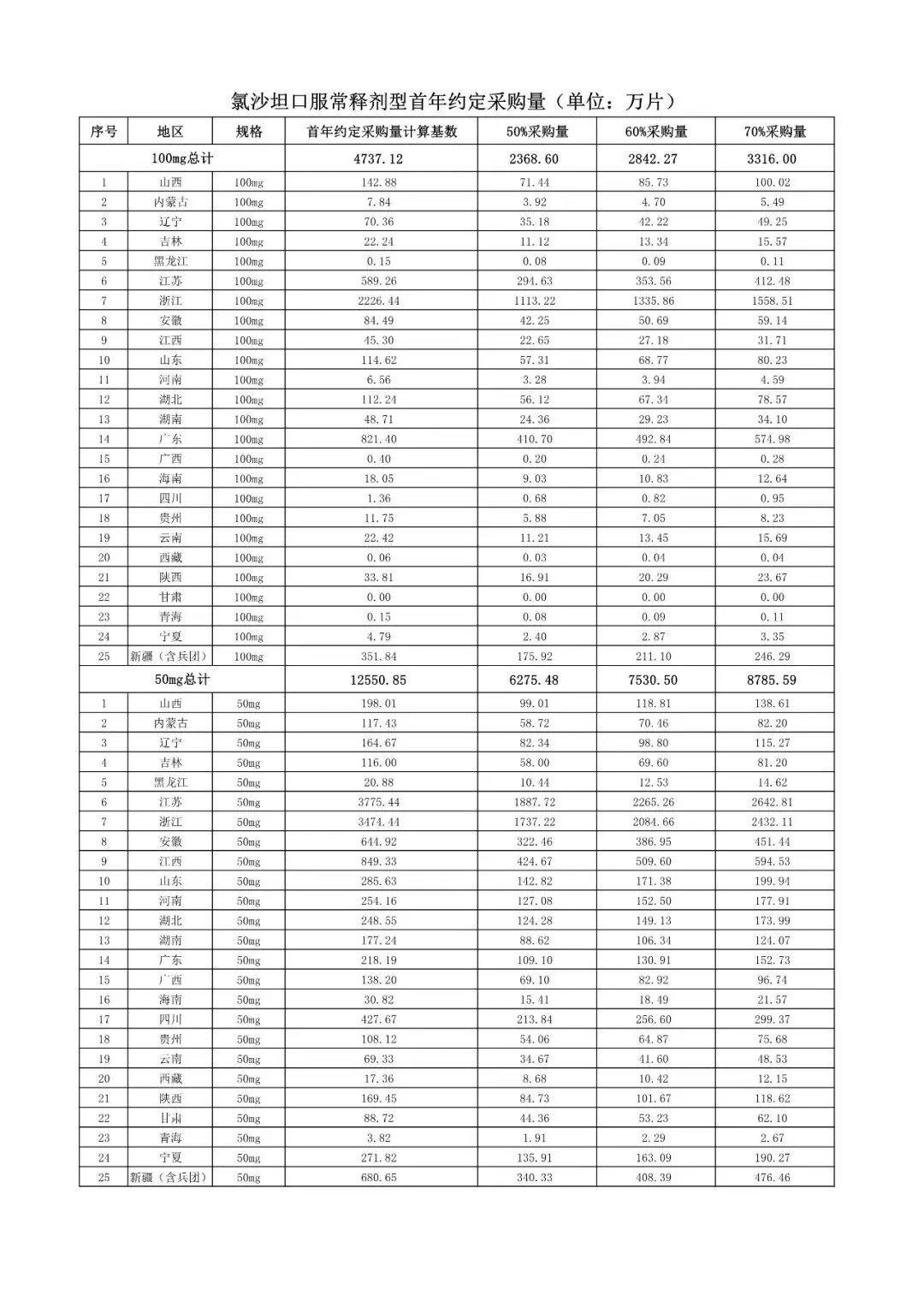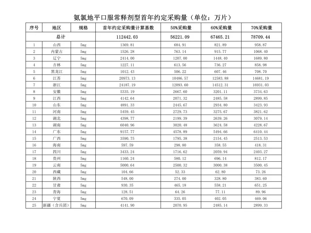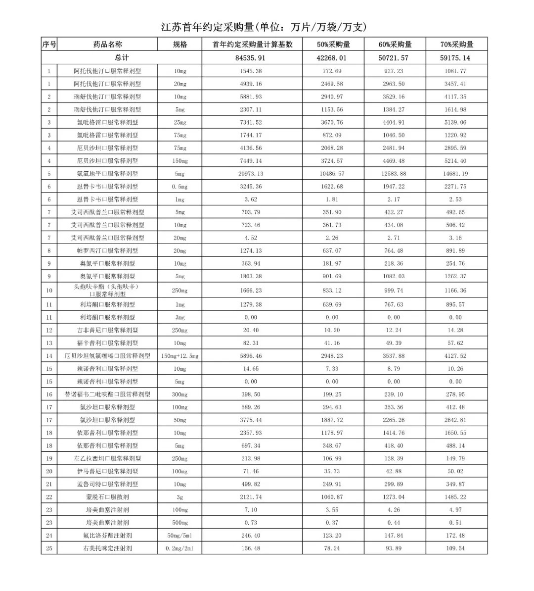 9月1日,上海阳光医药网公布了《联盟地区药品集中采购文件》,带量采购从原有的4+7区域(北京、上海、天津、重庆四个直辖市+沈阳、大连、厦门、广东、深圳、成都、西安)向江苏、浙江、安徽、山东、广东等25个地区推开,基本囊括了全国绝大部分省份。品种为阿托伐他汀、厄贝沙坦等。有业内人士指出,本次带量采购从4+7区域向全国推开,其实是在市场意料之内,毕竟4+7扩面已经具备了执行基础,首批“4+7”带量采购取得了25个中选品种平均降幅52%,最高降幅96%的降价成果。目前来看,11个试点城市执行较为到位,某些城市如西安,已经超额完成采购量并继续追加。医械汇判断,从2020年开始,集采品种将更加多元化,届时将扩容到其他通过一致性评价的品种。根据文件中公布的各省的首年约定采购量计算基数,25个地区的集采体量是此前4+7的采购量的3-5倍。以阿托伐他汀和氯吡格雷为例,先后采购量巨幅增长,因此本次集采结果的重要性可见一斑。
